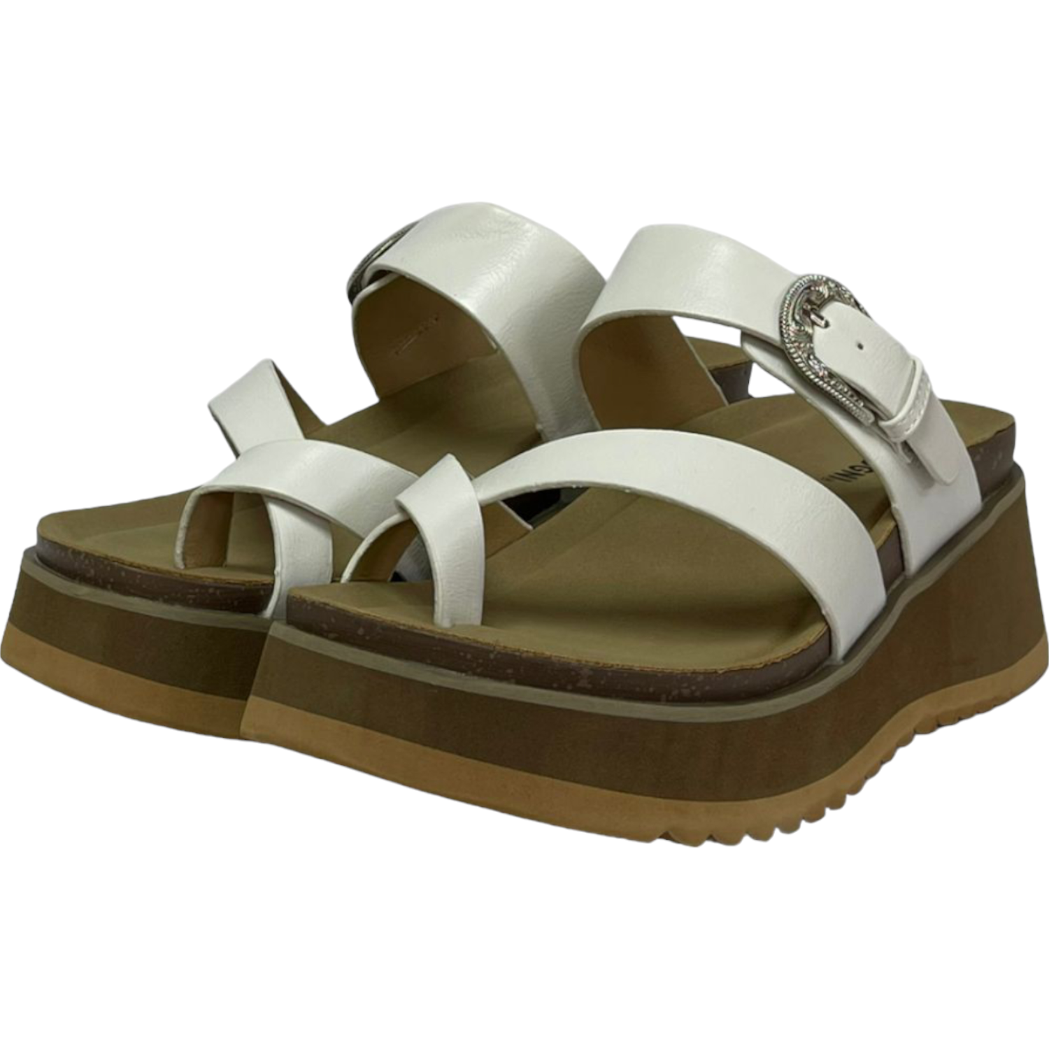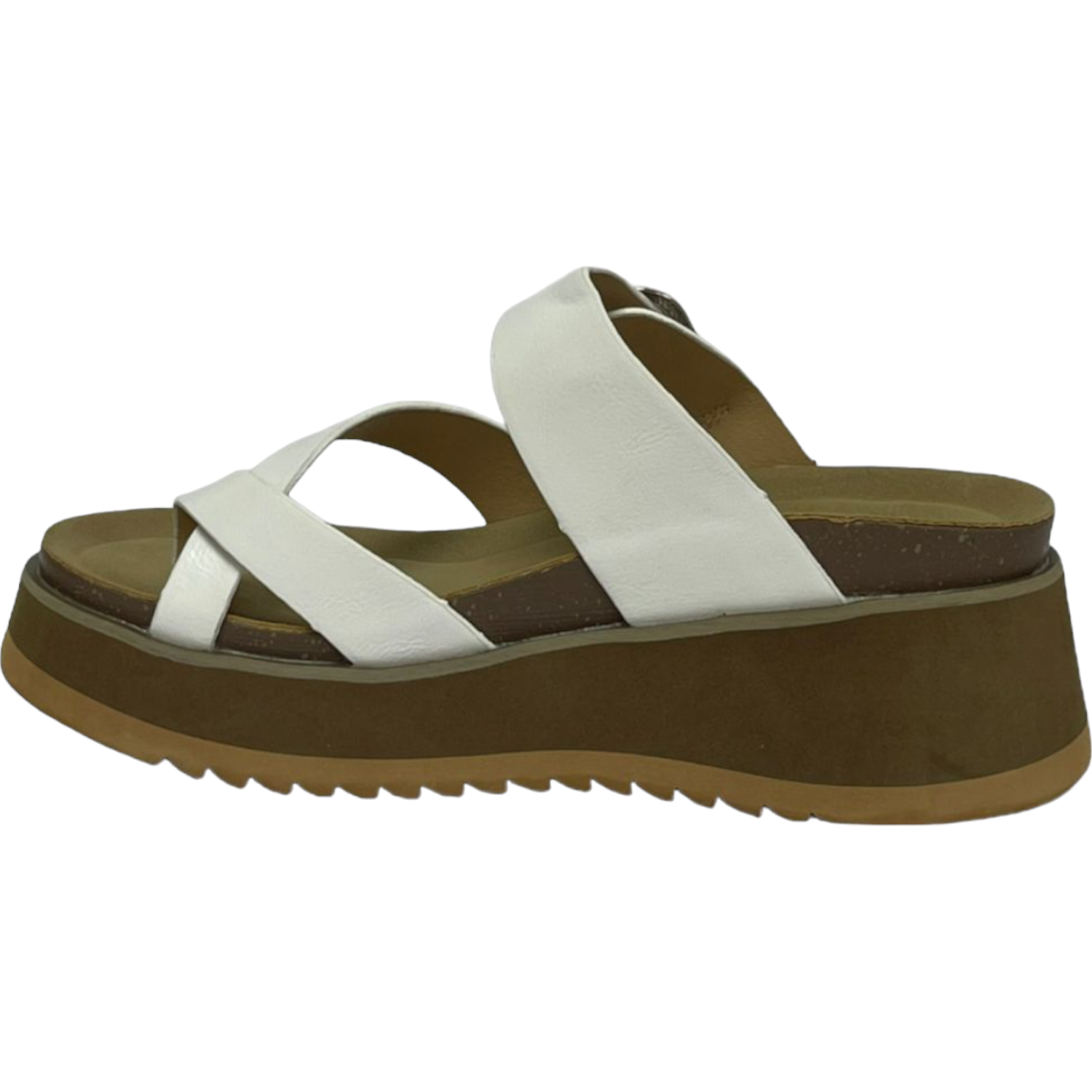 - La sandalia Rosario destaca por su estilo moderno y versátil. Con plataforma de 6 cm en EVA y plantilla textil, brinda suavidad y confort en cada paso. Su capellada sintética en color blanco con hebilla la convierte en la opción ideal para un look casual con un toque elegante.