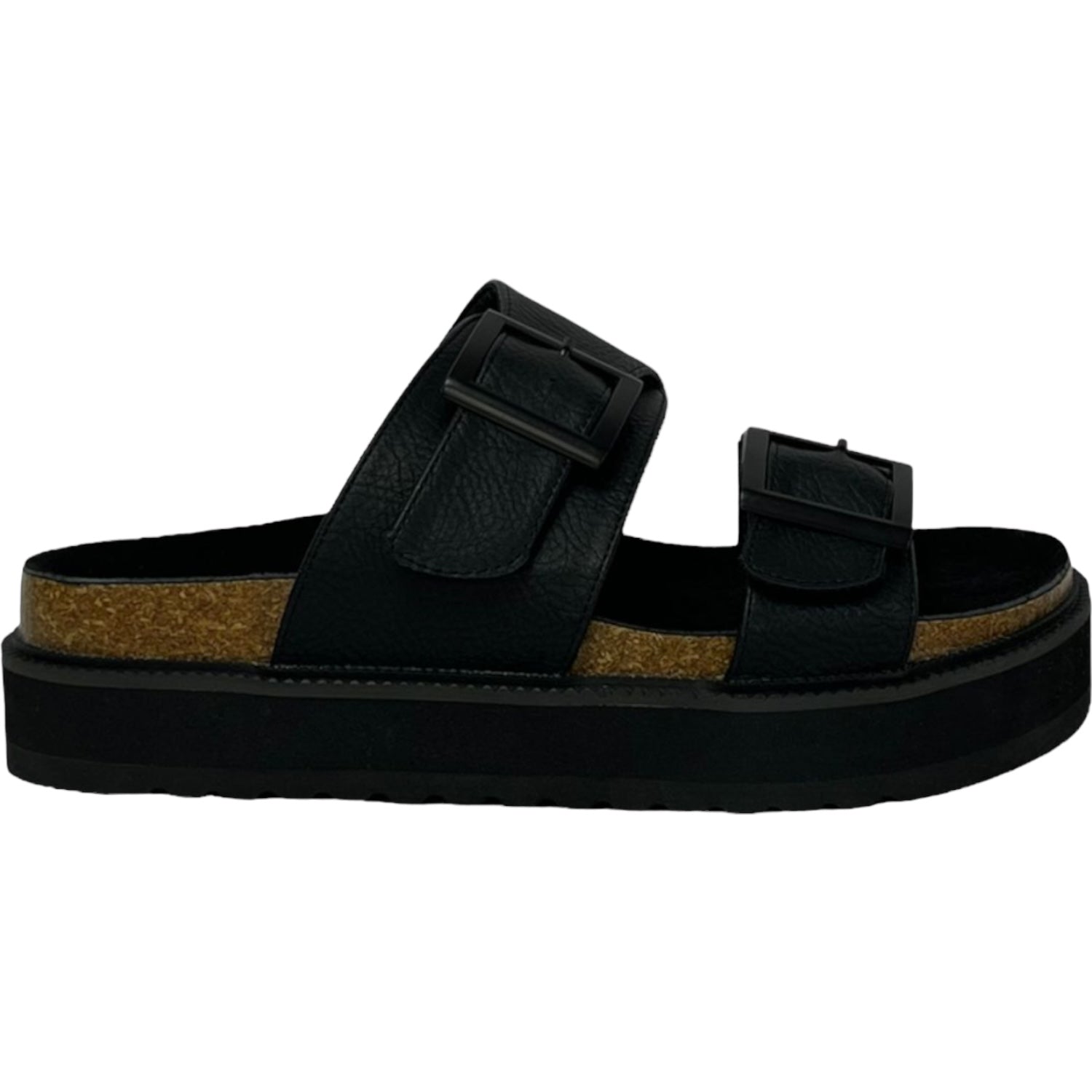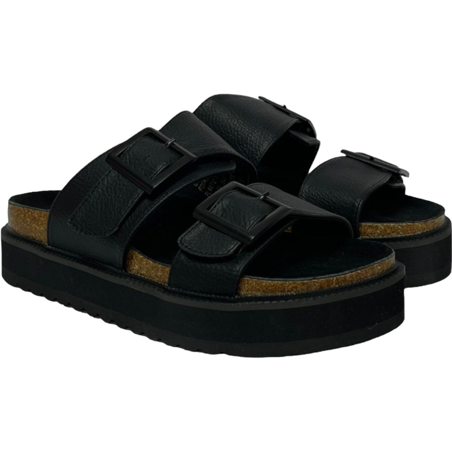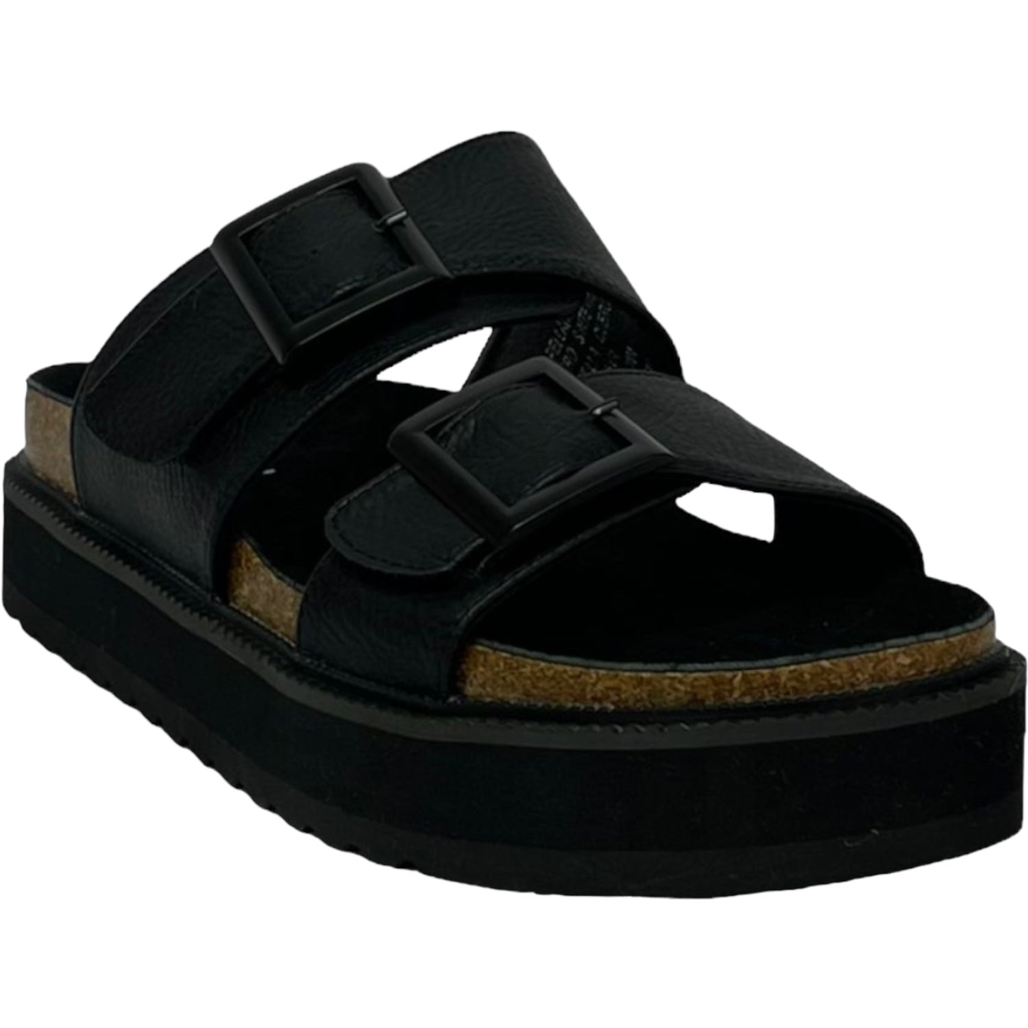 La sandalia Detogni modelo London destaca por su diseño moderno en negro. Con plataforma de 5 cm y plantilla acolchada, entrega confort y estabilidad en cada paso. Sus dos correas anchas con hebillas metálicas ajustables aportan un estilo urbano y versátil, ideal para acompañar looks casuales con un toque sofisticado.
