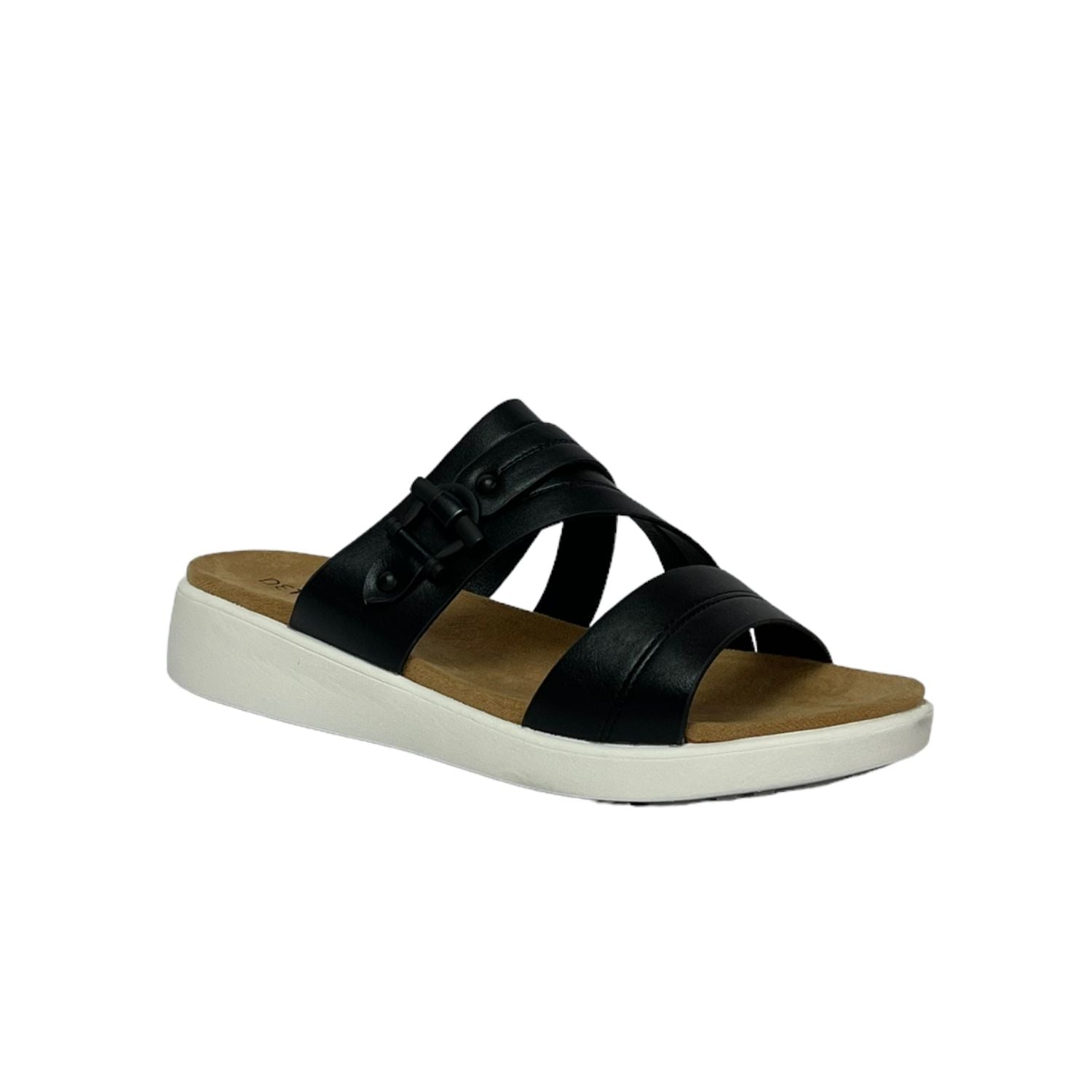 - La sandalia cómoda Detogni modelo Marta en color negro combina sencillez y confort. Con suela liviana de 4 cm y plantilla acolchada, brinda suavidad y estabilidad en cada paso. Su diseño de correas cruzadas con hebilla lateral aporta un estilo versátil y casual, ideal para uso diario.