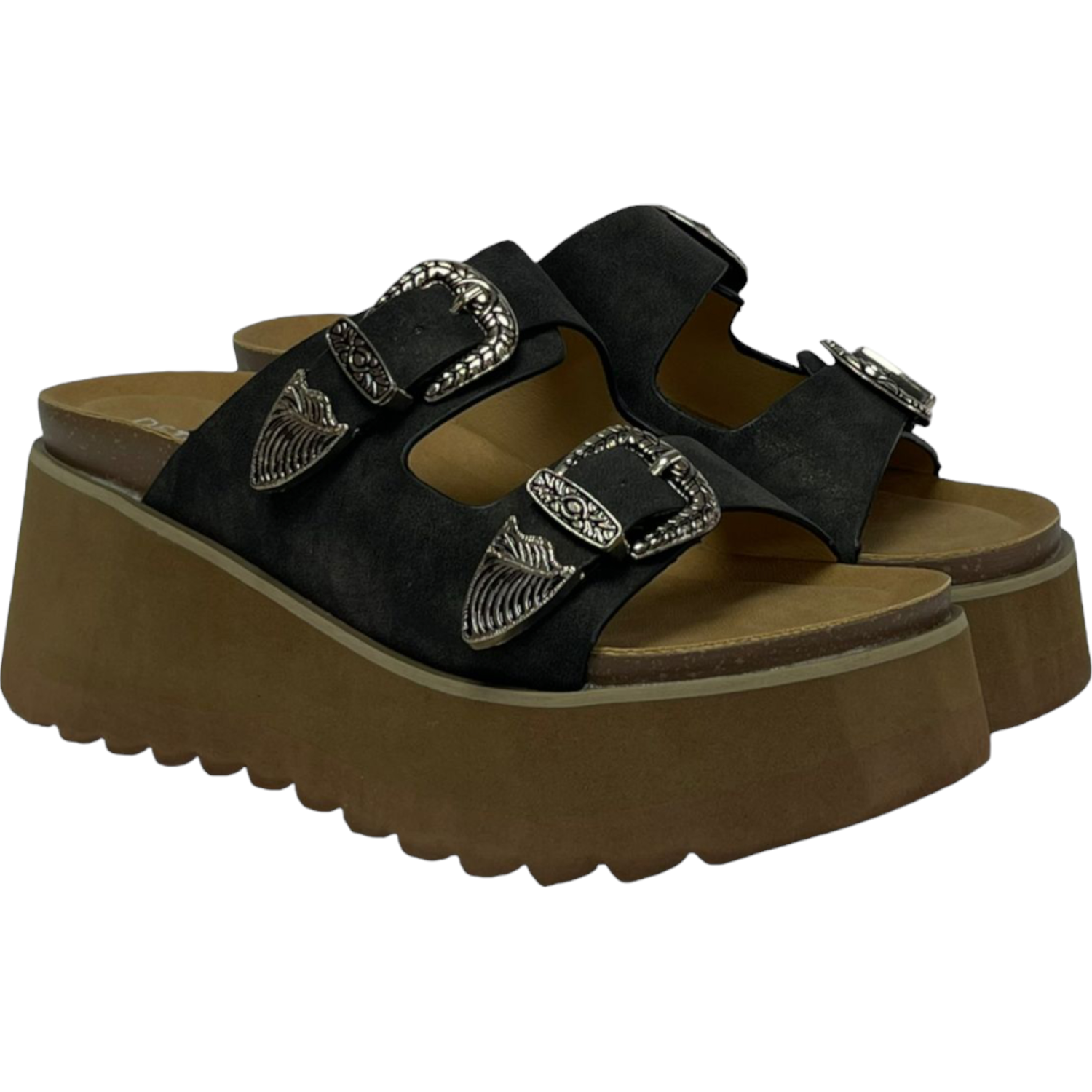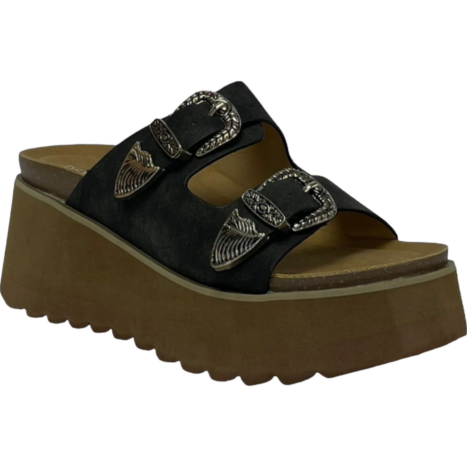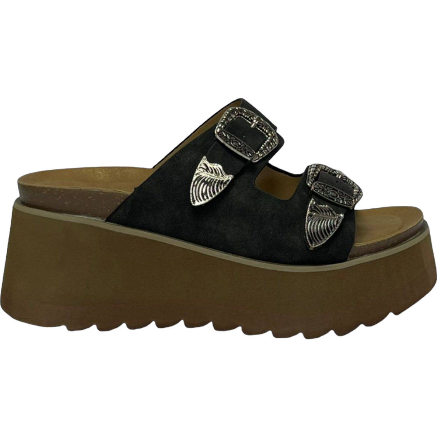 La sandalia cómoda Detogni modelo Orquídea resalta por su diseño atrevido y moderno. Con plataforma de 7 cm , brinda altura y estabilidad sin perder confort. Sus dos correas con hebillas metálicas decorativas aportan estilo único, ideal para looks casuales con personalidad.