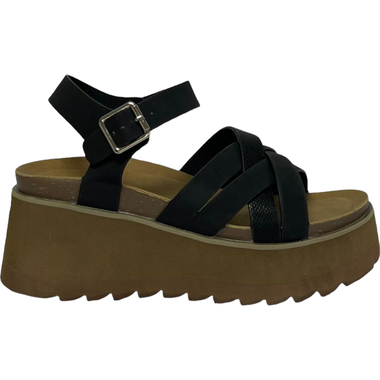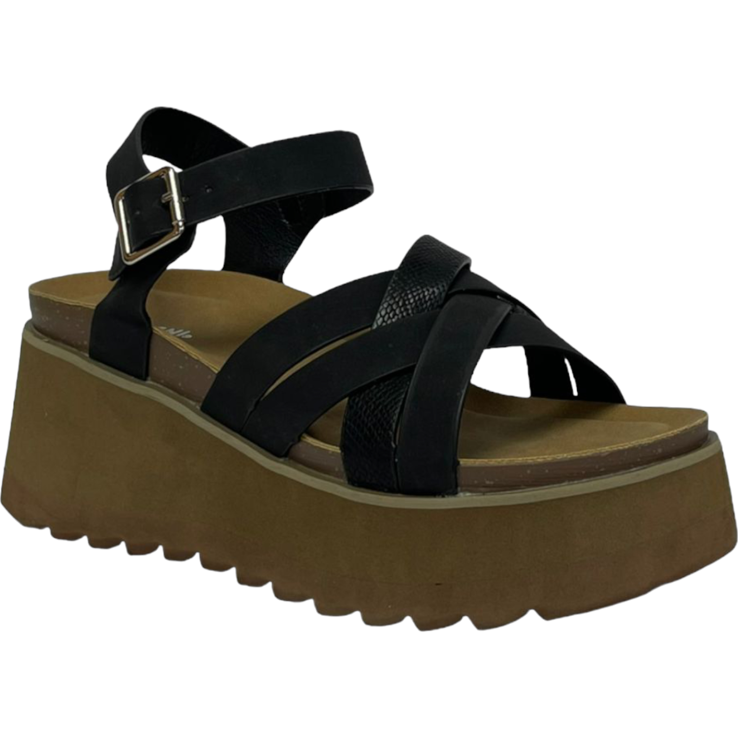 La sandalia cómoda Detogni modelo Paz en tono dorado beige combina elegancia y confort. Con plataforma de 8 y plantilla textil, brinda altura y suavidad al caminar. Su diseño con correas cruzadas, una de ellas con detalle reptilado, y pulsera ajustable con hebilla metálica, la hacen ideal para un look moderno y versátil.